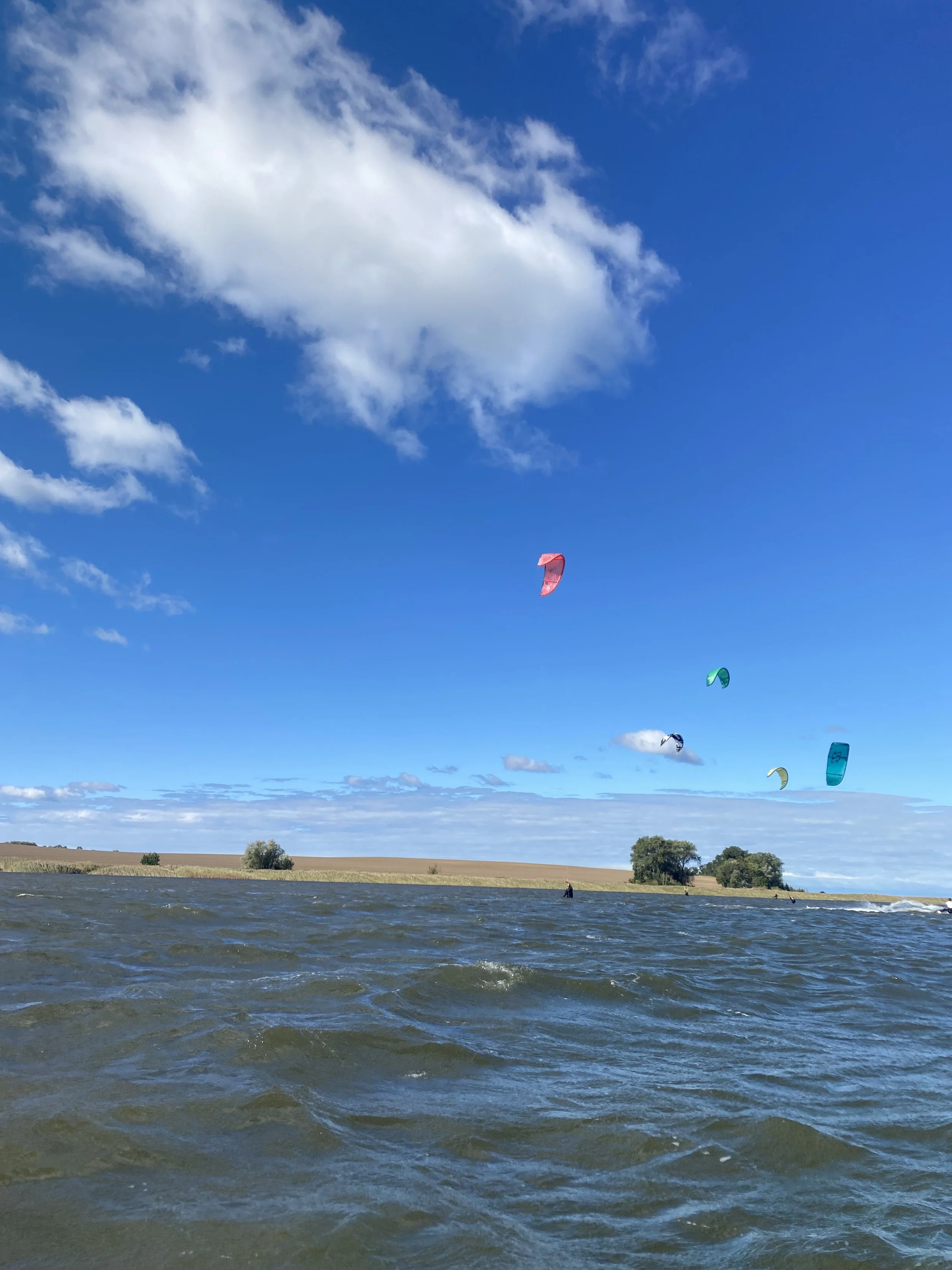 Unsere Homespots befinden sich am Barther Bodden an der Ostsee. Durch mehrere Spots in der Umgebung können wir für jede Windrichtung den passenden Kitespot wählen. So nutzen wir die Bedingungen optimal und sorgen dafür, dass du möglichst viel Zeit auf dem Wasser verbringst und schnellen Progress beim Kiten machst.